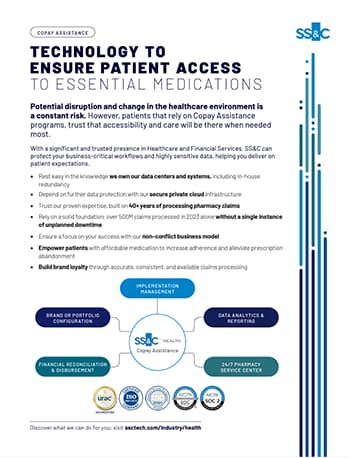 Copay assistance programs are essential when patients depend on them for the medication they need. SS&C Health provides 40+ years of processing pharmacy claims with privately owned data centers and systems and a secure private cloud.