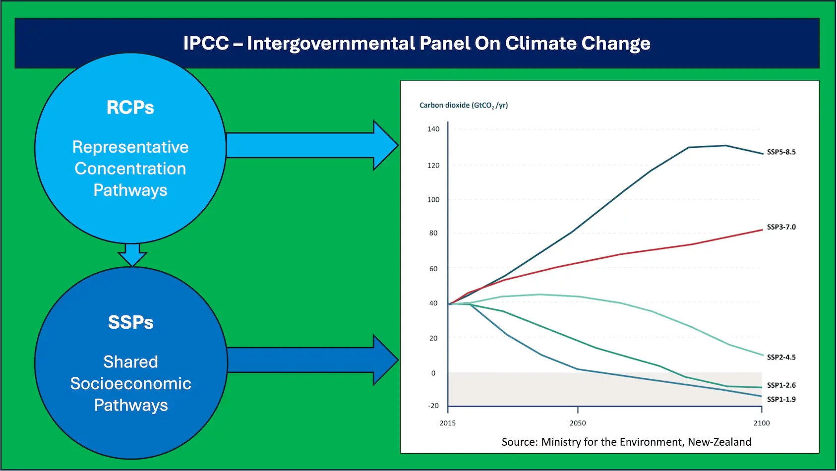The first “global” climate models appeared in the second half of the 20th century. Their evolution is linked to a combination of research breakthroughs, some Nobel Prizes and ongoing computing progress. Decades later, climate scenarios are still produced by multi-disciplinary teams of domain experts, with access to supercomputer resources. Fostered in large part by the work of the Intergovernmental Panel on Climate Change (IPCC) over the last 30 years, global climate model data are now published more broadly, with increased coordination and standardization across participating research institutes. Under the IPCC guidance, teams around the world have created new scenario sets blending emission trajectories (Representative Concentration Pathways, or RCPs) and socio-economic narratives (shared socioeconomic pathways, or SSPs). The combined “SSP-RCP” scenarios (see Fig. 1) are often used as building blocks for assessment studies, policy-making and downstream financial scenario modeling exercises.