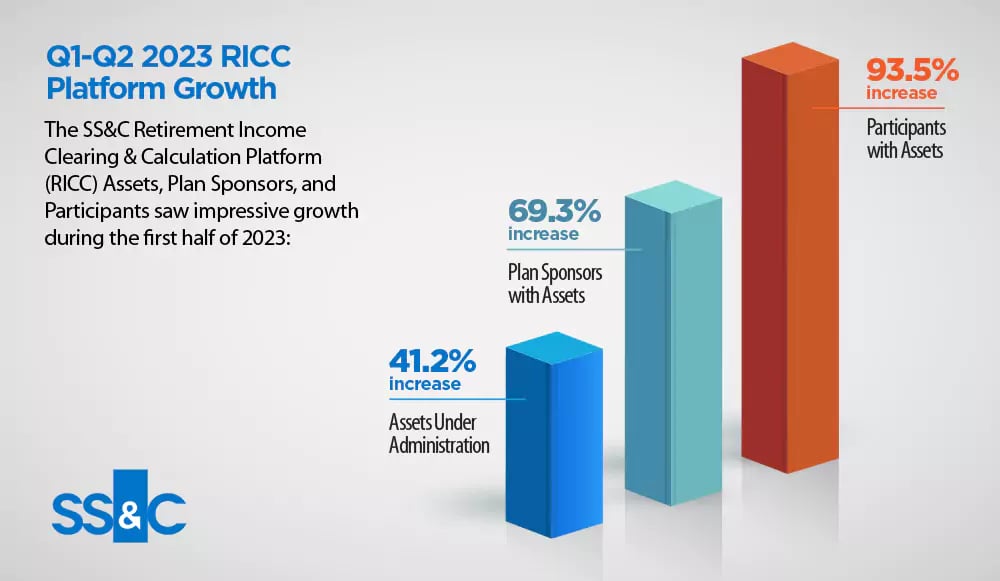 Retirement Income adoption trends by plan sponsors and participant utilization continued the strong momentum that we saw during 2022. As that momentum continues, we want to share some of the trends we’ve seen in recent months. The SS&C Retirement Income Clearing & Calculation Platform (RICC) Assets, Plan Sponsors, and Participants saw impressive growth during the first half of 2023: